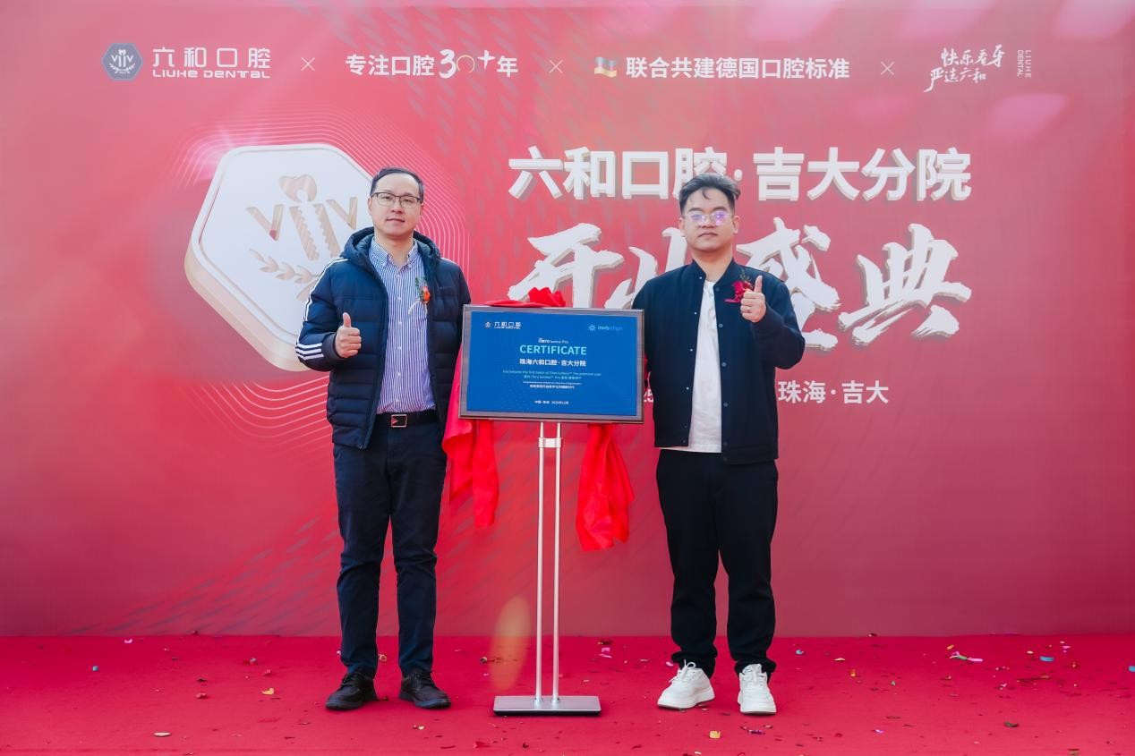 六和口腔黎昊总经理与隐适美南区廖健豪经理携手登台,共同揭幕,宣告着六和口腔正以前瞻视野,率先拥抱数字化诊疗浪潮,开启精准、高效、舒适的口腔健康服务新篇章。